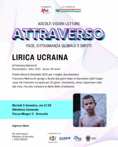 Per il ciclo “Attraverso”, ideato da ARCI Reggio Emilia, con il patrocinio della Regione Emilia-Romagna alle 21 in biblioteca verrà proiettato il film Lirica Ucraina, di Francesca Mannocchi (2024), vincitore del David di Donatello 2025 per il migliore documentario.