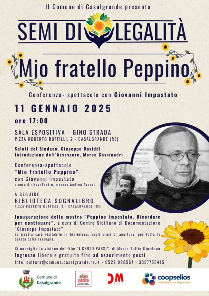 Nell’ambito del progetto ‘๐ฆ๐ฒ๐บ๐ถ ๐ฑ๐ถ ๐๐ฒ๐ด๐ฎ๐น๐ถ๐๐ฎฬ’, fortemente voluto dall’Amministrazione comunale di #casalgrande, che ha visto, oggi, la presenza di ๐๐ถ๐ผ๐๐ฎ๐ป๐ป๐ถ ๐๐บ๐ฝ๐ฎ๐๐๐ฎ๐๐ผ con la sua conferenza-spettacolo ‘Mio Fratello Peppino’, รจ stata inaugurata ๐๐ป๐ฎ ๐บ๐ผ๐๐๐ฟ๐ฎ ๐ณ๐ผ๐๐ผ๐ด๐ฟ๐ฎ๐ณ๐ถ๐ฐ๐ฎ interamente dedicata al percorso di vita di Giuseppe Impastato e la sua lotta contro Cosa Nostra alla Biblioteca Sognalibro – Casalgrande.